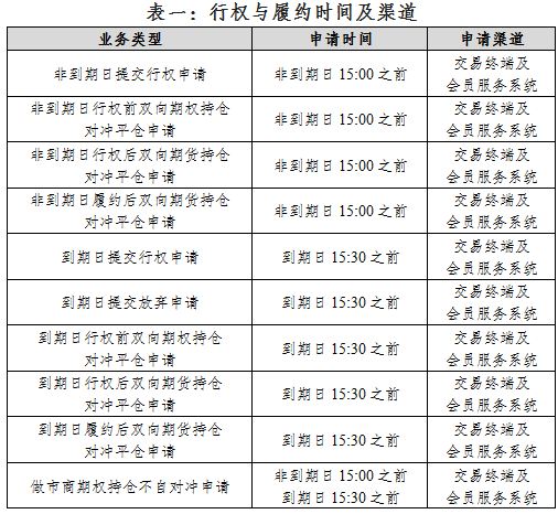 丁二烯橡胶期权为美式期权,客户办理行权、放弃行权等业务的时间及渠道见下表: