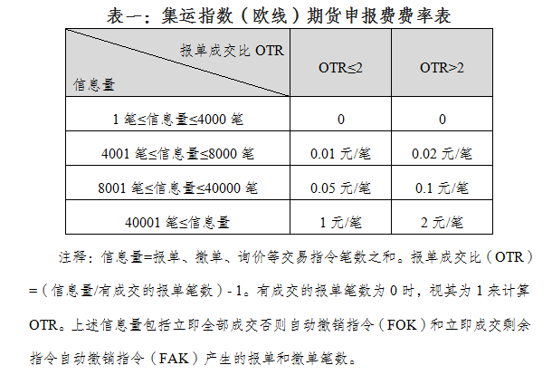 集运指数(欧线)期货各合约的申报费费率标准如下: