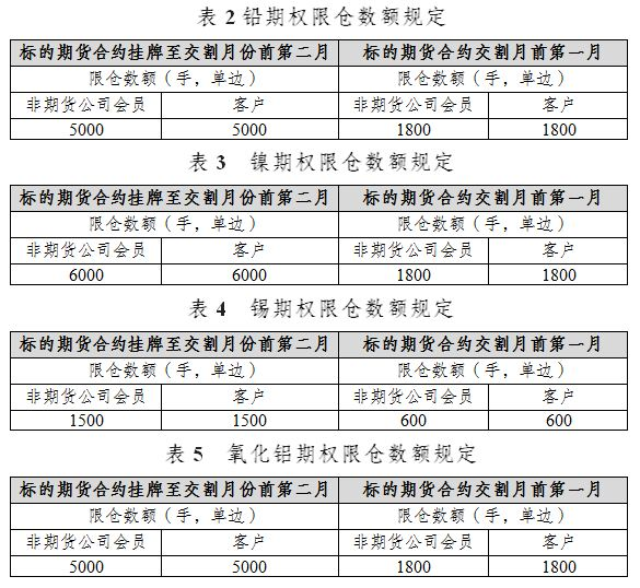 铅、镍、锡和氧化铝期权合约中,合约月份涉及的标的期货持仓量阈值均为10000手(单边)。