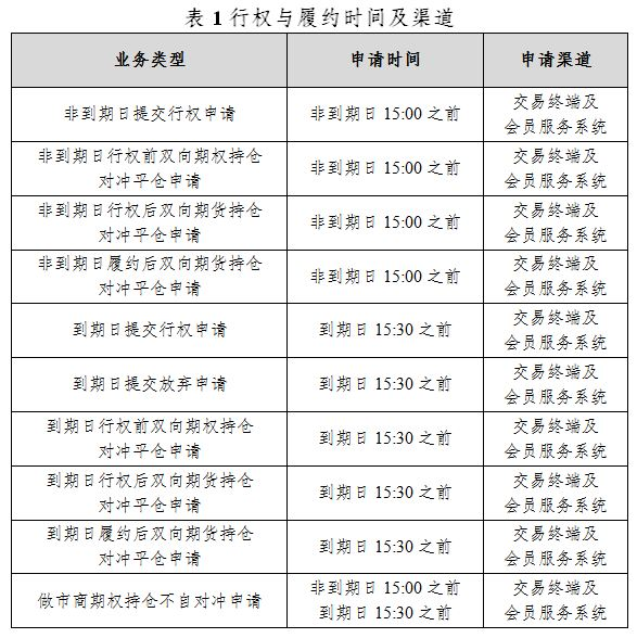铅、镍、锡和氧化铝期权均为美式期权,客户办理行权、放弃行权等业务的时间及渠道见下表。