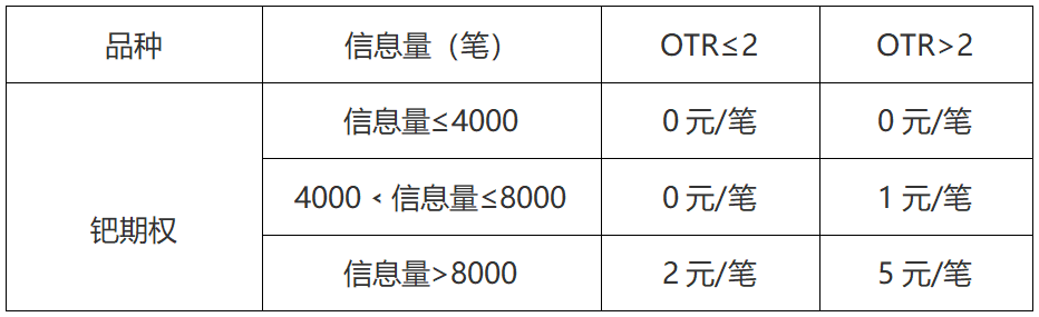 钯期权按日、按合约月份收取申报费,收费标准如下:
