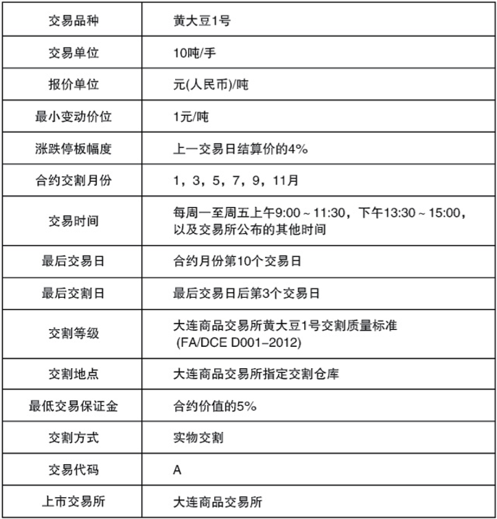 黄大豆1、2号期货合约的最低交易保证金为合约价值的5%。交易保证金实行分级管理,随着期货合约交割期和持仓量的增加,交易所将逐步提高保证金比例。黄大豆1、2号合约临近交割期时交易保证金收取标准: