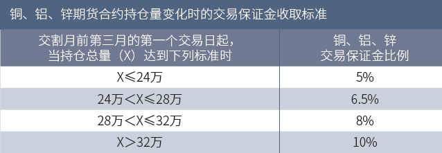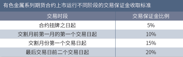 (3)锌期货合约上市运行不同阶段的交易保证金收取标准: