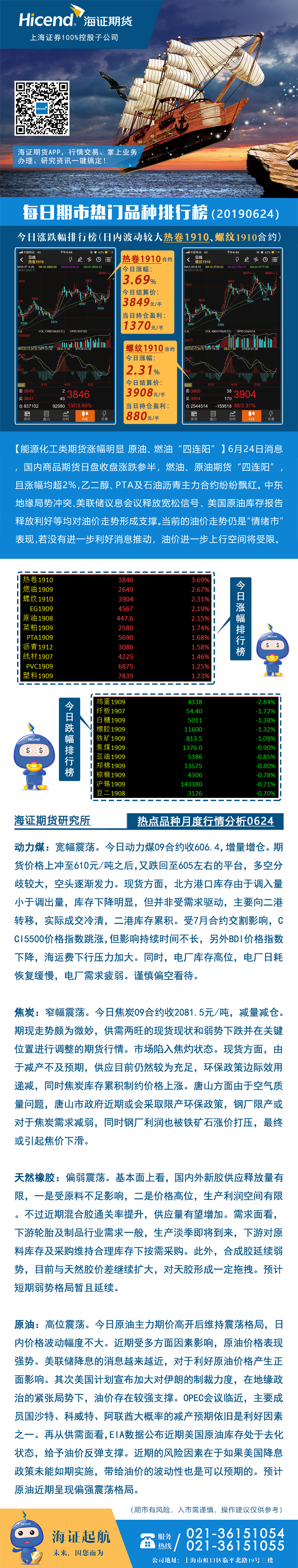 海证期货每日涨跌龙虎榜20190624