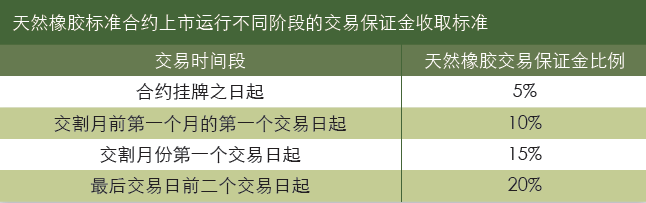 (2)天然橡胶期货合约上市运行不同阶段的交易保证金收取标准