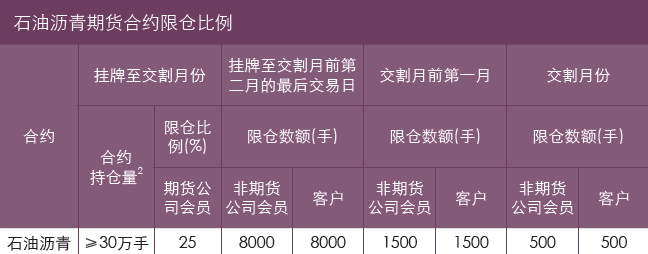 不同时沥青合约限仓比例和持仓限额规定 (单位:手)