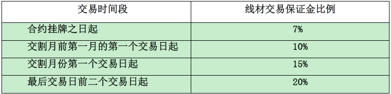 当线材期货合约达到应该调整交易保证金的标准时,交易所应当在新标准执行前一交易日的结算时对该合约的所有历史持仓按新交易的交易保证金标准进行结算,保证金不足,应当在下一个交易日开市前追加到位。在进入交割月份后,卖方可以使用标准仓当作为于其所示数量相同的交割月份期货合约持仓的履约保证,其持仓对应的交易保证金不再收取。