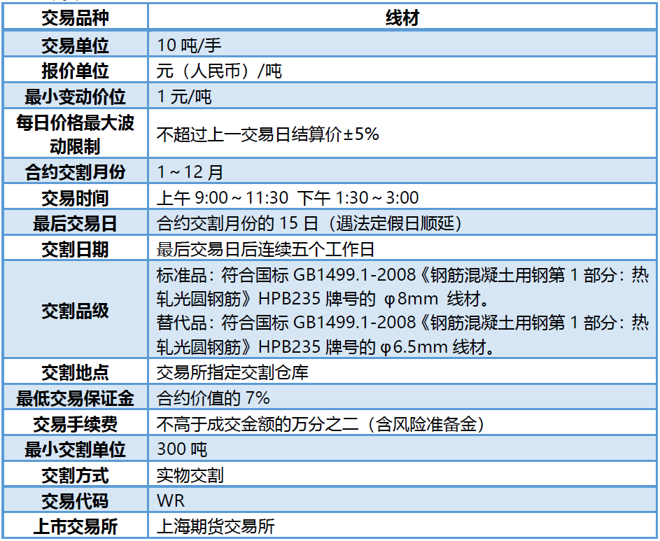 二、我们再来看一下线材期货的交易合约,有哪些知识点值得广大投资者关注并了解的?