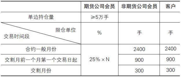 N为期货公司会员持仓比例系数,交易所可根据相关情况调整。期货合约在某一交易时间段的持仓限额标准自该交易时间段起始日前一交易日结算起执行。套期保值交易头寸实行审批制,其持仓不受限制。