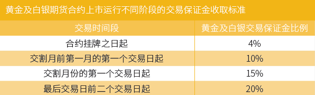 白银期货合约上市运行不同阶段的交易保证金收取标准