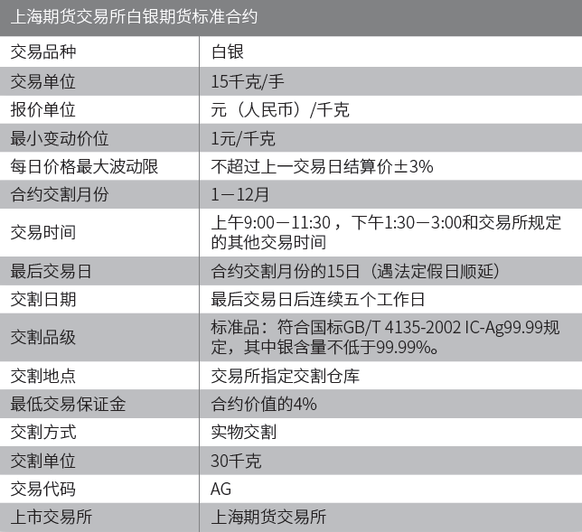 4)白银期货合约的交割,相关交割规定详细见交易所相关公示