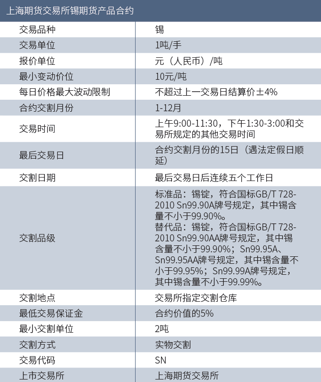 锡期货基础知识及交易合约知识点概括