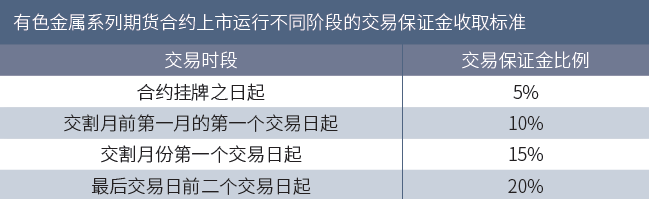 锡期货合约上市运行不同阶段的交易保证金收取标准:
