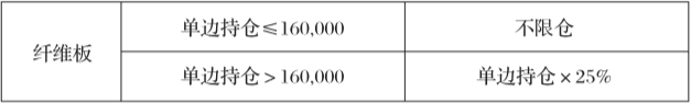 限仓是指交易所规定会员货客户可以持有的,按单边计算的某一合约投机头寸的最大数额。同一客户在不同期货公司会员处开有多个交易编码,各交易编码上所有持仓头寸的合计数,不得超过一个客户的限仓数额。纤维板一般月份合约的持仓限额(单位:手)。