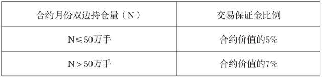 纤维板期货合约的最低交易保证金为合约价值的5%。新豆油期货合约的最低交易保证金为合约价值的5%。交易保证金实行分级管理,随着期货合约交割期的临近和持仓量的增加,交易所将逐步提高交易保证金比例。
