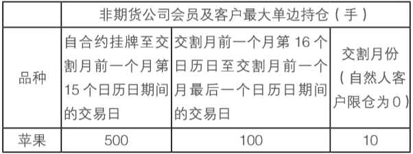 (2)苹果期货交易的限仓制度