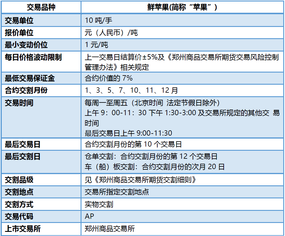 苹果期货基础知识及交易合约知识点概括