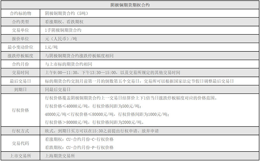 铜期权的交易、行权业务指南详见上期所:《铜期权交易业务指南》《铜期权行权业务指南》