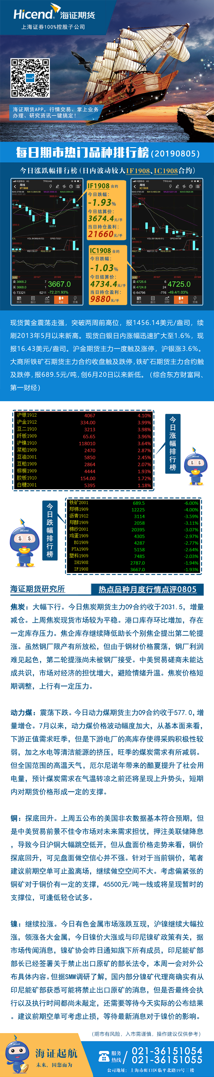 海证期货每日涨跌龙虎榜20190805