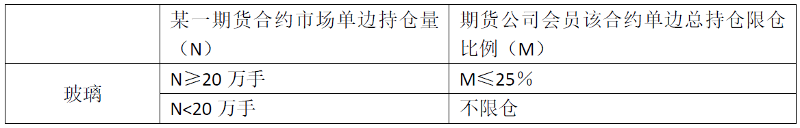 在玻璃期货合约上市交易的“一般月份”(交割月前一个月份以前的月份)、“交割月前一个月份”、“交割月份”三个期间,对于期货公司会员的持仓限制统一规定如下: