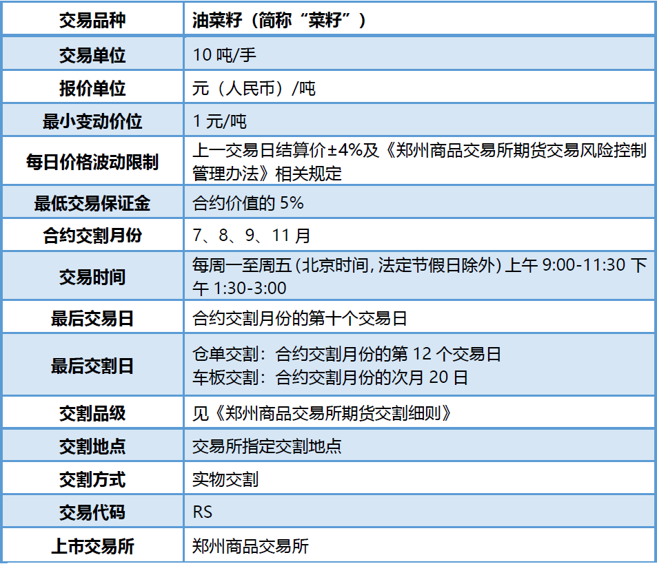 今天我们将从三个方面为大家介绍一一详细介绍关于油菜籽期货的概念、交易合约以及影响油菜籽价格因素的一些知识点。
