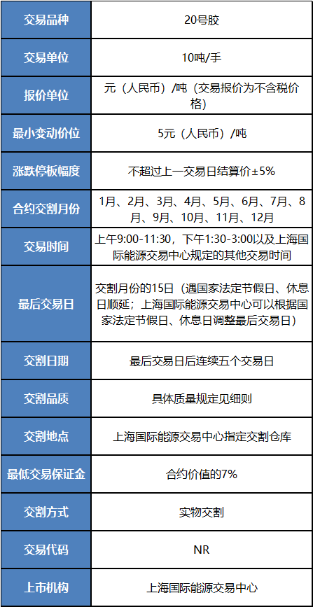 2018年6月12日,紧跟国际步伐的上期所20号标胶作为特定期货品种立项申请获得中国证监会的批复同意,2019年8月12日,20号胶将正式上市登录上海国际能源交易中心,从此期货大家族又添加了一名新丁。