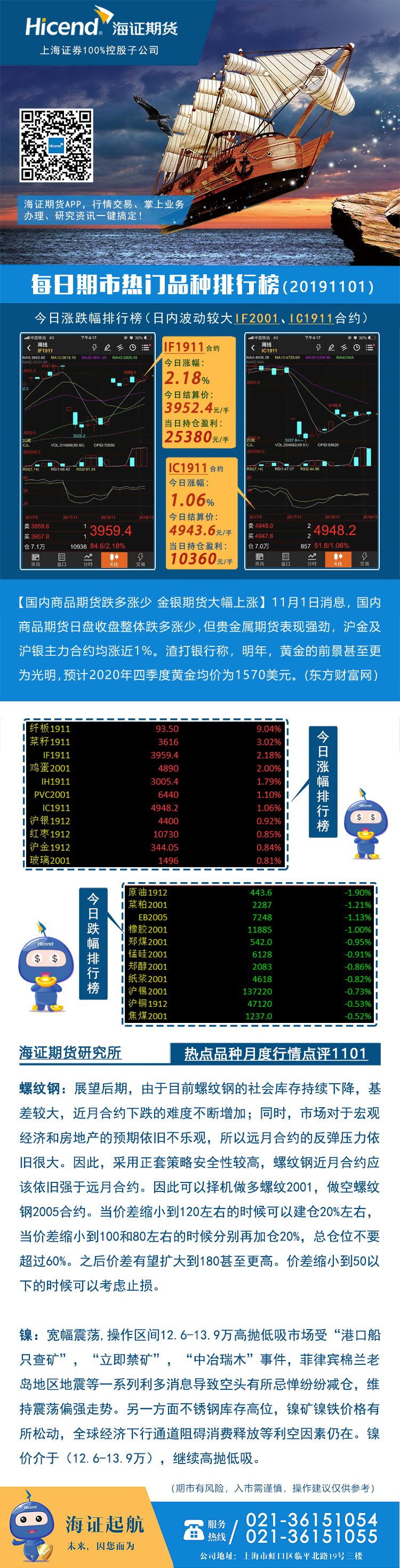 海证期货每日涨跌龙虎榜20191101
