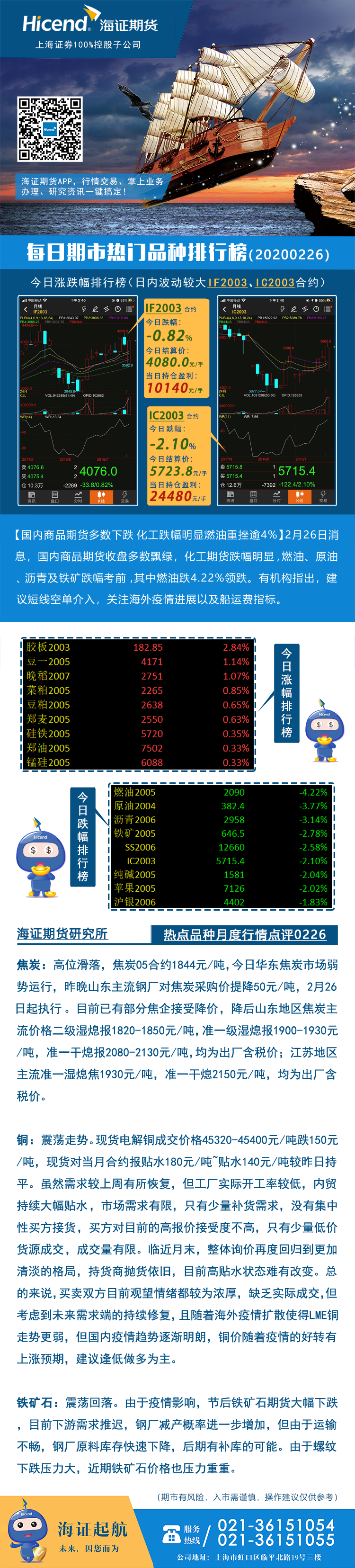 海证期货每日涨跌龙虎榜20200226