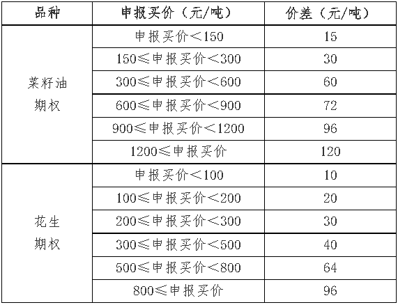 菜籽油、花生期权合约最优买卖报价价差小于等于下表价差时,不得询价。